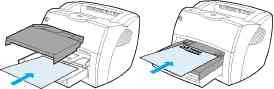 Принтеры позволяют печатать на материале нестандартного размера или карточках размером от 76 на 127 мм (3 на 5 дюймов) до 216 на 356 мм (8,5 на 14 дюймов). В зависимости от характеристик бумаги в лоток первоочередной подачи можно загружать до 10 листов. Для загрузки в принтер целой стопки листов следует использовать основной подающий лоток.