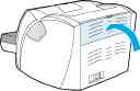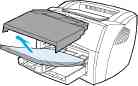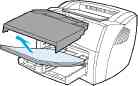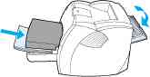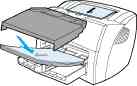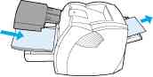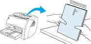 8 Снова загрузите стопку листов в подающий лоток. Первая сторона должна быть обращена вниз, а нижний край бумаги должен подаваться первым в принтер. Установите на место лоток первоочередной подачи.
