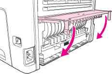 8. Откройте дверцу пути прохождения носителя при автоматической двусторонней печати сзади принтера.
