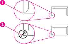 • Конструкция. Подавать в принтер разрешается только конверты, сохраняющие плоскую форму с максимальным скручиванием 6 мм, без содержания внутри воздуха. Конверты, содержащие воздух, могут вызвать проблемы. Не используйте конверты, которые имеют запоры, защелки, затяжные шнуры, прозрачные окошки, отверстия, перфорацию, вырезы, содержат синтетические материалы, марки или тисненые рисунки. Не используйте конверты с клеящими веществами, которые не требуют для склеивания применять увлажнение, но требуют применять давление.