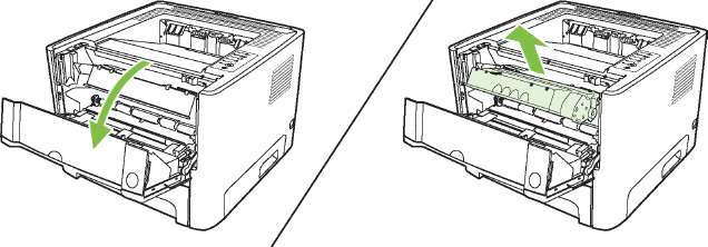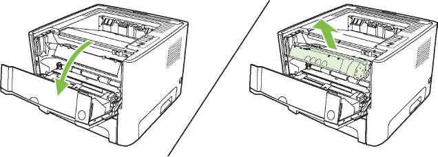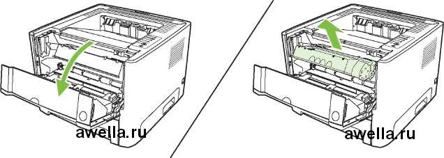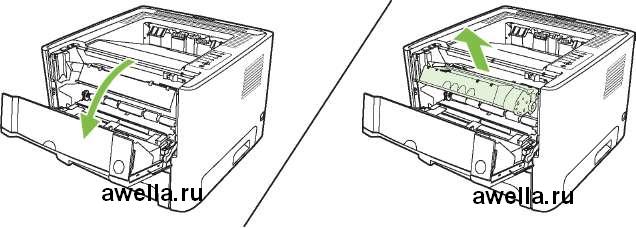 1. Нажмите на клавишу дверцы доступа и извлеките из принтера.
