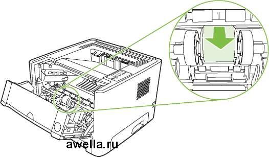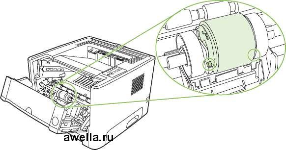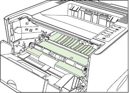 В процессе эксплуатации принтера внутри него могут скапливаться частицы бумаги, тонера и пыли. Со временем эти скопления могут стать причиной ухудшения качества печати, например, начнут появляться грязные пятна и полосы, а также замятия бумаги. Очистка в области пути прохождения бумаги позволяет предотвратить появление подобных дефектов.