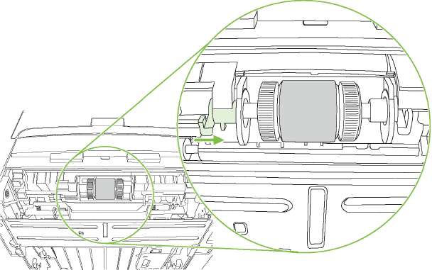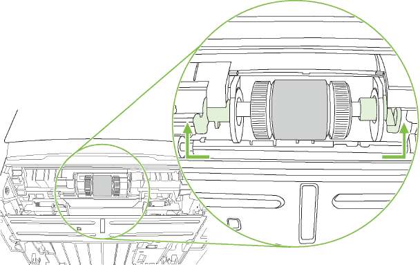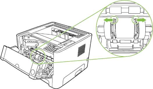 9. Совместите черные крепежные фиксаторы принтера с пазами подающего ролика и установите его на место до щелчка.