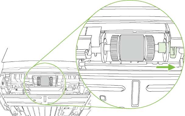 7. Переместите блок подающего ролика вправо и извлеките левый колпачок.