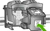 7. Поместите новый в пустое гнездо. Затем осторожно нажмите на верхнюю часть его до щелчка. Трехцветный устанавливается в левое гнездо. Черный или фотокартридж устанавливается в правое гнездо.