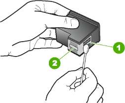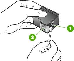 6. Очистите только медные контакты. Подождите, пока картридж высохнет (приблизительно 10 минут) перед повторной установкой.