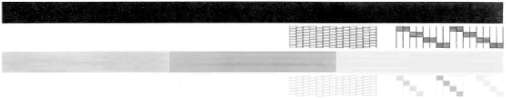 Если некоторые линии в шаблоне прерываются, это может означать неисправность сопел. Возможно, необходимо очистить их. Если черная полоса отсутствует, является блеклой или на ней имеются полоски, возможно, возникла проблема с черным в правом гнезде.