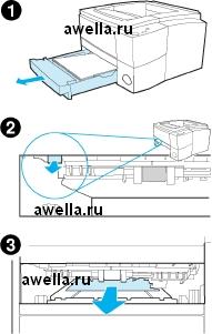 3 Если бумага застряла в зоне подачи и ее нельзя достать из зоны картриджа, крепко возьмитесь за бумагу и аккуратно вытащите ее из принтера.
