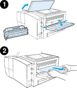 Откройте задний выводной отсек, чтобы бумага выходила из принтера по прямой.