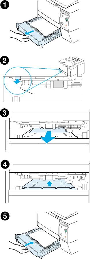 Инструкции по правильной установке задних ограничителей бумаги см. в разделе «Загрузка лотка 2 (на 250 листов) или дополнительного лотка на 250 листов, установленного вместо лотка 3» или «Загрузка лотка 3 (на 500 листов)» .