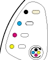• Одновременно нажмите на клавиши (Продолжение) и (Отмена задании) и удерживайте их нажатыми для отображения вторичной световой индикации.
