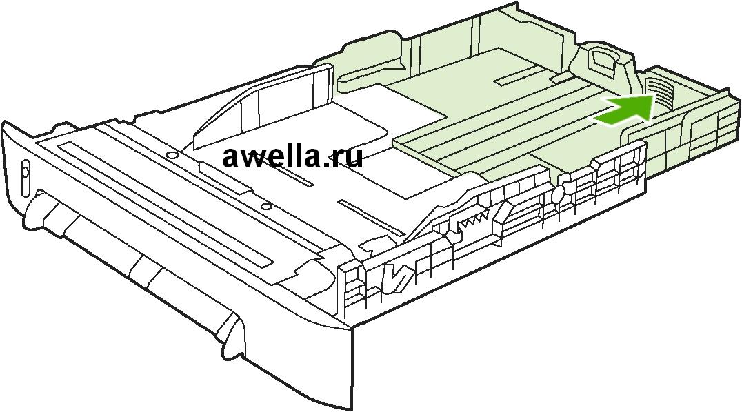 3. Если длина бумаги для печати превышает формат Letter/A4, установите заднюю часть лотка так, чтобы она соответствовала загружаемому формату.