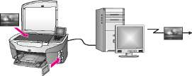 Если аппарат подключен через порт USB, можно отправлять фотографии друзьям и родственникам, используя аппарат и программное обеспечение HP, установленное на компьютере. При наличии компьютера с системой Windows используйте программу HP Image Zone; при наличии компьютера Macintosh используйте клиентское приложение HP Instant Share.