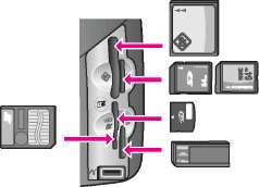 Использование карты памяти или камеры PictBridge на HP Photosmart 2613/2713