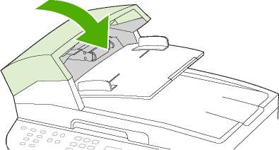 4. Опустите узел зеленого фиксатора и закройте крышку устройства АПД.