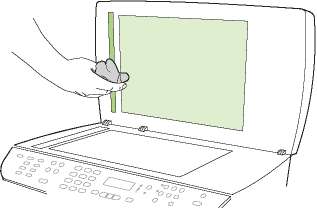 На обратной стороне крышки сканера расположена белая подложка для документов, на которой может скапливаться грязь и мелкие частицы бумаги.