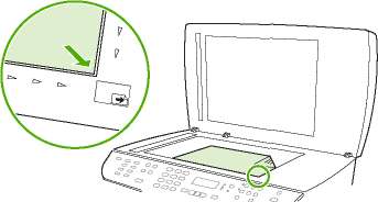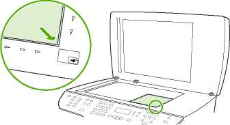 3. Поместите исходный документ на планшет сканера лицевой стороной вверх, верхний левый угол документа должен находиться в углу планшета, который отмечен значком.