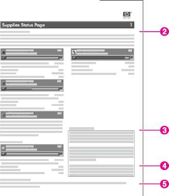 1. Область печатающего картриджа. Эта область содержит информацию для каждого из них. Эта информация включает номер и состояние каждого, а также оставшийся срок службы, выраженный в процентном соотношении, в качестве графика и количества оставшихся страниц.