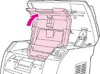 • Если нужный слот находится в недоступной позиции, закройте верхнюю крышку и узел сканера и нажимайте клавишу Поворотное загрузочное устройство, пока нужный слот не окажется в правильном положении.
