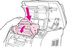 10. Опустите барабан в принтер и плотно установите его на место.