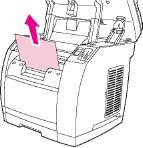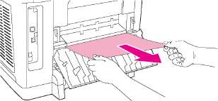 4. Взявшись обеими руками за выступающие края (или середину) листов, осторожно вытащите застрявший носитель из принтера.