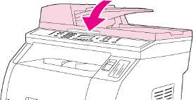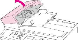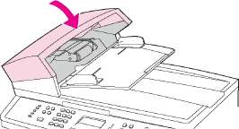 Откройте крышку, под которой находится документ, устраните замятие, закройте крышку и повторно загрузите бумагу в лоток АПД.
