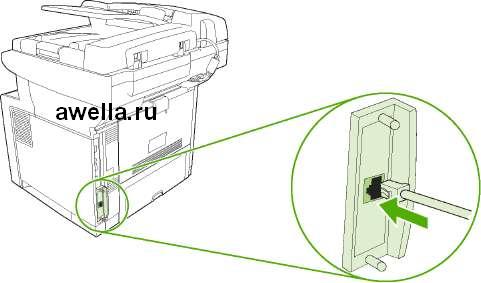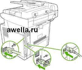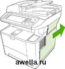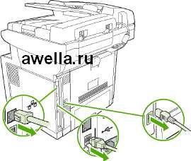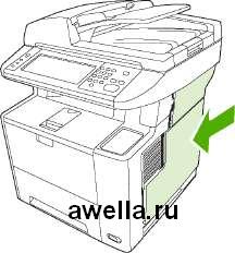 В этом устройстве МФП используется также разъем, позволяющий расширить сетевые возможности МФП. Разъем можно использовать для создания дополнительного сетевого соединения, например, посредством сервера печати с возможностями беспроводной связи, сетевой карты или коммуникационной карты для подключения последовательных устройств или устройств AppleTalk.