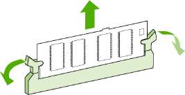 Чтобы извлечь DIMM, необходимо сначала открыть зажимы.