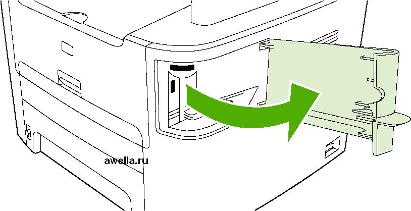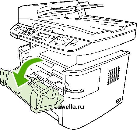 3. Откройте дверцу входного лотка для приоритетной полистовой подачи (лоток 1).