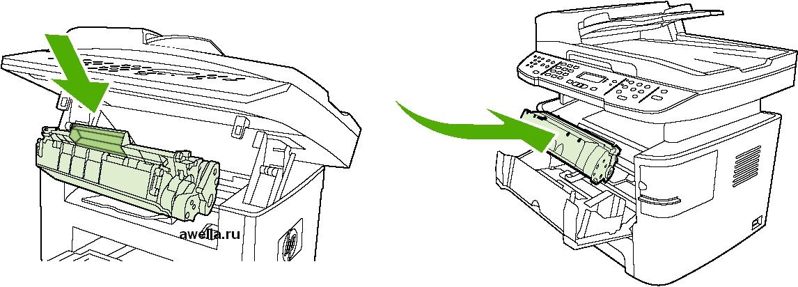 Работа со скобками, сшивателем и картриджами на HP LaserJet 3050/3052/3055/3390/3392
