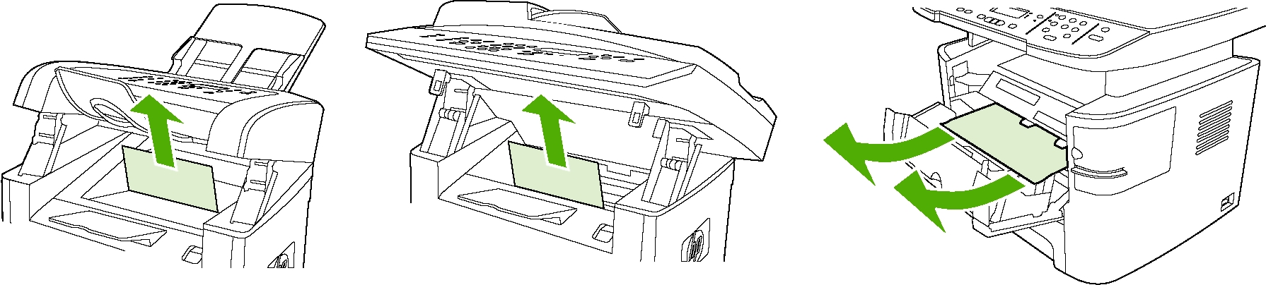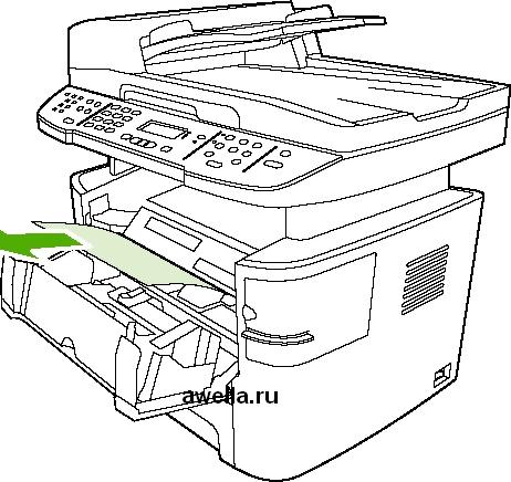 Вытащите застрявший носитель, держа его ровно (в строго горизонтальном или вертикальном положении). Извлечение застрявшего в многофункциональном устройстве носителя под углом может повредить устройство.