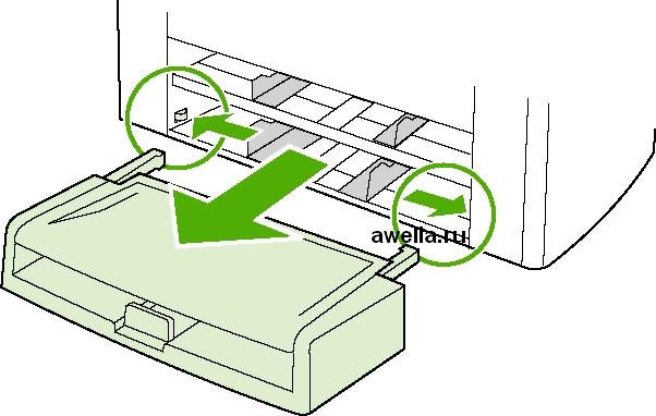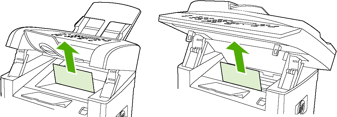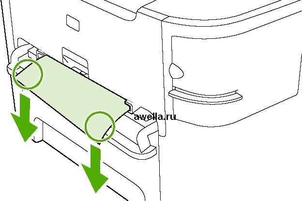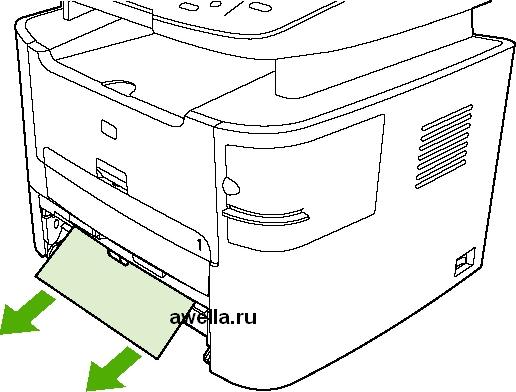 7. Взявшись обеими руками за выступающие края (или середину) листов, осторожно вытащите застрявший носитель.
