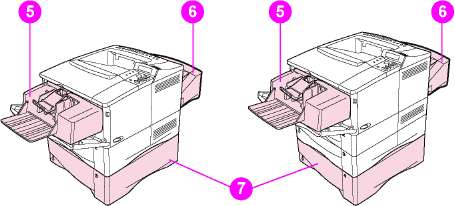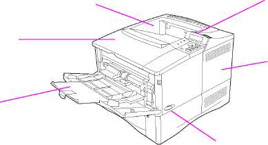 Части принтера (вид спереди, принтер HP LaserJet 4050/4050 N)