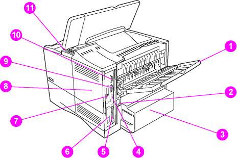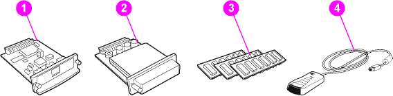 Принтер имеет два слота для плат расширенного ввода/вывода. В принтерах HP LaserJet 4050 N и 4050 TN один из них используется для платы сервера печати HP JetDirect 10/ 100Base-TX. Имеются другие принадлежности и компоненты.
