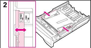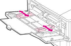 2 Если лоток до этого не был отрегулирован на требуемый размер бумаги, передвиньте левую и правую направляющие в положение, соответствующее ширине бумаги.
