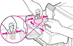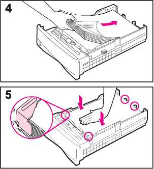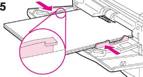 5 Убедитесь в том, что бумага лежит плоско, и что все четыре угла входят под язычки на направляющих.