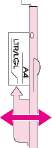 Нажмите на выступы фиксаторов (синего цвета) в направлении друг к другу для того, чтобы вывести из зацепления фиксаторы в пазах, одновременно перемещая заднюю секцию лотка в направлении к положению для требуемого размера бумаги. Убедитесь в том, что фиксаторы защелкнуты в соответствующих пазах.