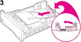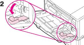 3 Приподнимите задний ограничитель бумаги, переместите его в положение, соответствующее требуемому формату бумаги, и зафиксируйте его в этом положении. Если лоток не отрегулирован соответствующим образом, на дисплее принтера может появиться сообщение об ошибке или может возникнуть затор бумаги.