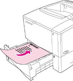 При работе с лотком 1 загрузите листы стороной для печати вверх, верхним коротким краем по направлению к принтеру.