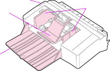 Документы, печатаемые в принтере, всегда выводятся в задний приемник, если он открыт. Бумага выходит из принтера лицевой стороной вверх, при том, что последняя страница оказывается наверху.