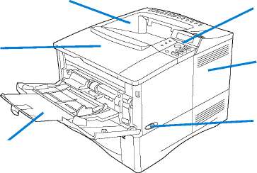 Части принтера (вид спереди, принтер HP LaserJet 4100/4100N)