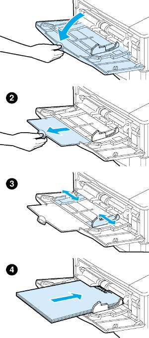 Обычно бумагу следует загружать стороной для печати вверх и верхней короткой стороной к принтеру.