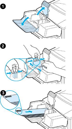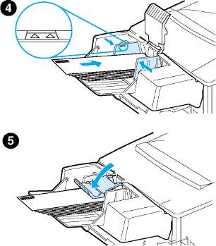 5 Установите боковые ограничители так, чтобы они слегка касались пачки бумаги, однако не сгибали ее.