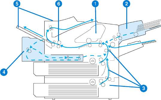 Если на панели управления принтера появляется сообщение о заторе бумаги, проверьте, не осталась ли бумага в местах, указанных на рисунке на следующей странице, затем обратитесь к процедуре по устранению заторов бумаги. Возможно, Вам придется проверить принтер на наличие застрявшей бумаги не только в том месте, которое было указано в сообщении о заторе. Если неясно, где именно застряла бумага, прежде всего проверьте область верхней крышки под ним.