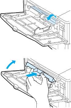 4 Откройте лоток 1 и снимите входную крышку, чтобы проверить, не остались ли еще куски застрявшей бумаги. Если бумага обнаружена, удалите ее.
