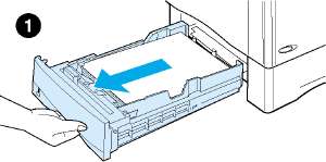 1 Выдвиньте лоток из принтера и удалите все поврежденные листы из лотка.