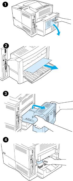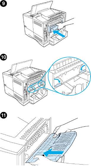 6 Переверните модуль двусторонней печати и удалите всю бумагу