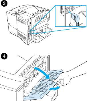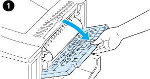 1 Откройте заднюю дверцу модуля двусторонней печати.