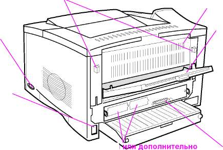 Документы, подаваемые в принтер, всегда выводятся через задний выходной отсек, если он открыт. Бумага выходит из принтера лицевой стороной вверх; причем последняя страница оказывается сверху.