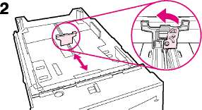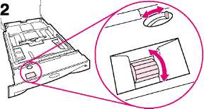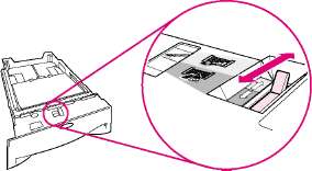 2 Поверните регулятор шкалы в лотке таким образом, чтобы принтером считывался правильный формат бумаги. С помощью переключателя можно получить доступ к расширенному набору форматов. Если регулятор шкалы установлен неправильно, появится сообщение об ошибке.